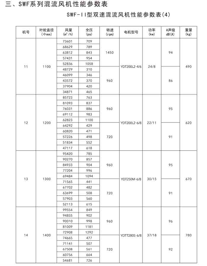 三、SWF-IV(HL3-2A)、HTF-PY(PYHL-14A)系列節能混流風機