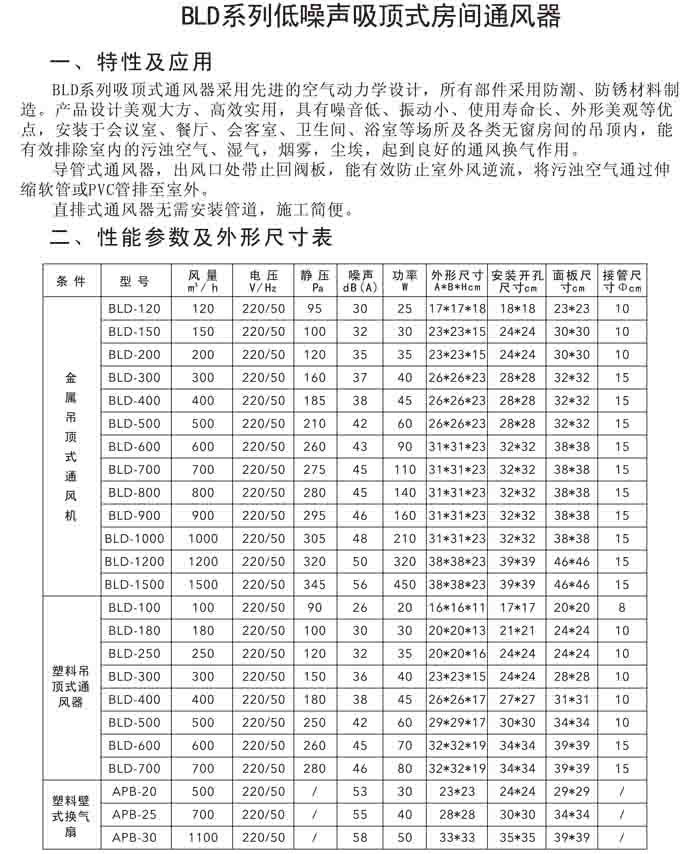 二、BLD、APB 低噪聲吸頂式房間通風器及百葉窗式換氣扇